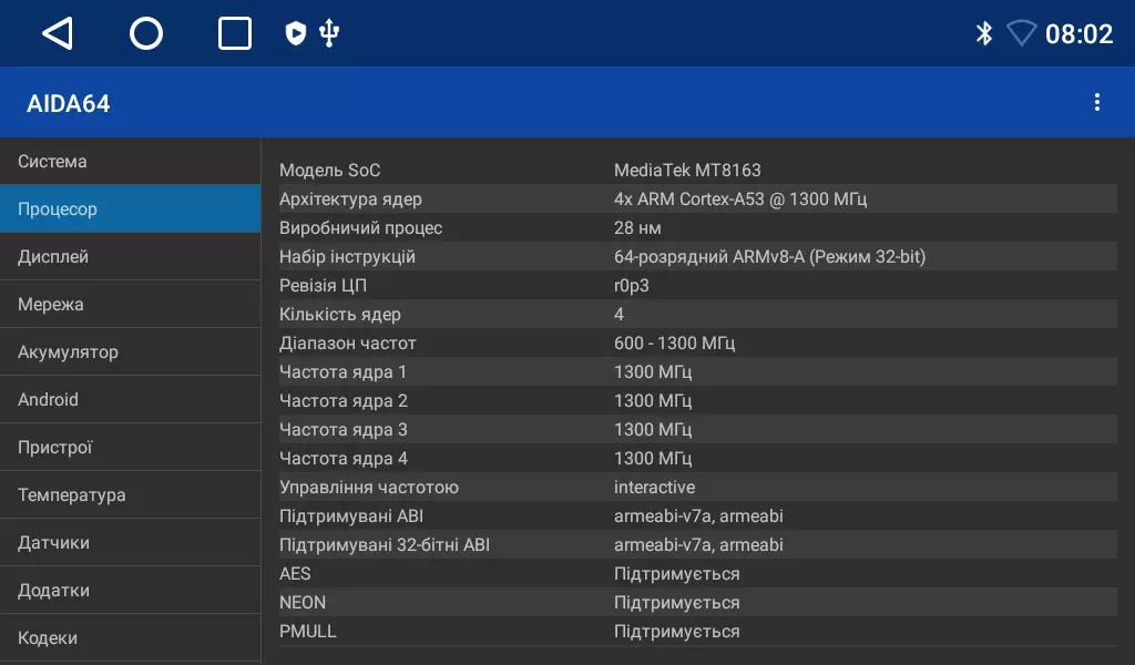 • 4-ядерний процесор A53 1.3 Ггц, Android 10.0