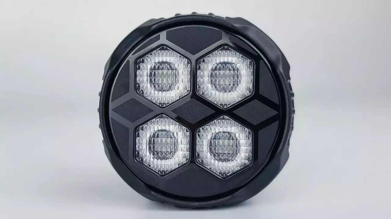 Фара має широкий розсіяний світловий зону (Flood) для розширення поля видимості та габаритне світло для поліпшення безпеки на дорозі.