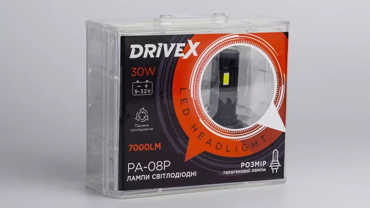 Лампи DriveX серії PA-08P пропонують компактний розмір, який максимально наближений до габаритів галогенових ламп. Це зробить ваш автомобіль стильним та сучасним.